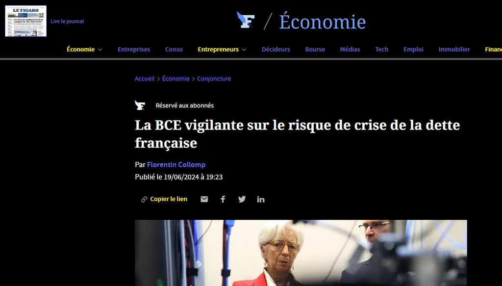 La Banque centrale européenne (BCE) accourrait-elle à la rescousse de la France si sa dette était attaquée par les marchés financiers en raison du chaos politique ? Cela reste à voir. Épinglée mercredi par la Commission européenne avec sept autres pays européens, dont l’Italie, la Slovaquie ou la Hongrie, pour son déficit excessif, la France navigue en eaux troubles depuis le choc entraîné par la dissolution de l’Assemblée nationale, le 9 juin. Le niveau considérable de sa dette, plus de 3 100 milliards d’euros, la rend vulnérable à tout mouvement de défiance des investisseurs et pourrait entraîner avec elle toute la zone euro.