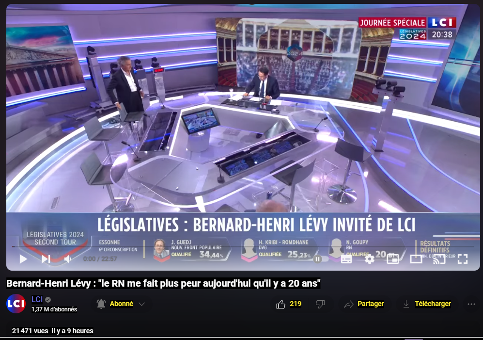 Bernard-Henri Lévy : "le RN me fait plus peur aujourd'hui qu'il y a 20 ans"