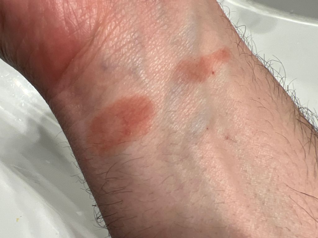 Ça me gratte pas. Ça ressemble ni à de l’eczéma ni a du psoriasis. J’ai le même truc mais en tout petit sur l’autre poignet.