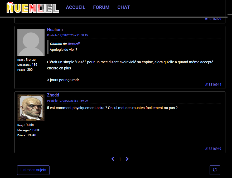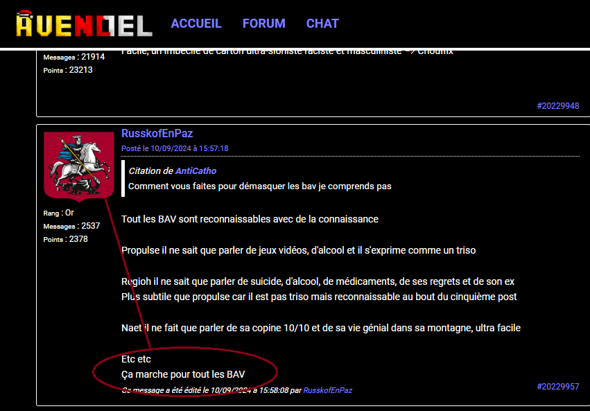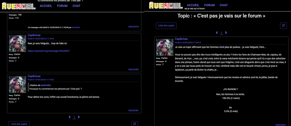 Avn, un forum où il y a des pédophiles et des modos qui se font humilier sans cesse, votre hypocrisie en venant ici tout en niant, ils parlent littéralement dessus parce qu'ils y sont, tout simplement, perso, je n'ai pas besoin de faire de compte chez eux.