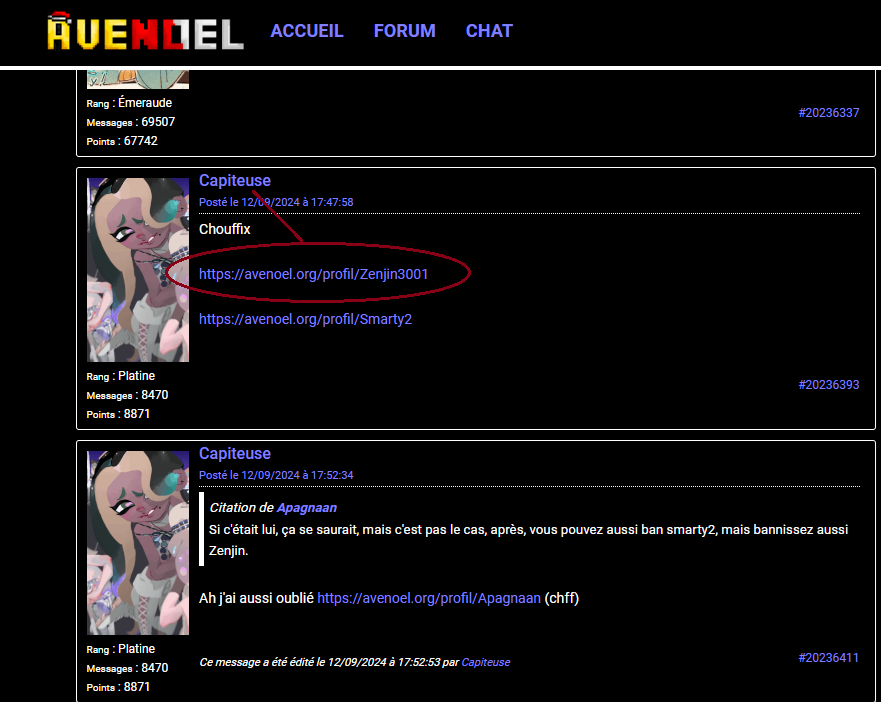 Si tu ne préviens pas qu'ils se trompaient, modos comme admins, ces clowns vont laisser bannir à vue des personnes du forum qui n'ont pas été mis dans leur liste alors qu'ils ne disent rien de choquant et qu'ils font partie du peu de personnes stables sur avn ; ils vont les bannir sans savoir, ils ont supprimé l'autre message décrivant à la perfection toute leur médiocrité car ils ont été humiliés.