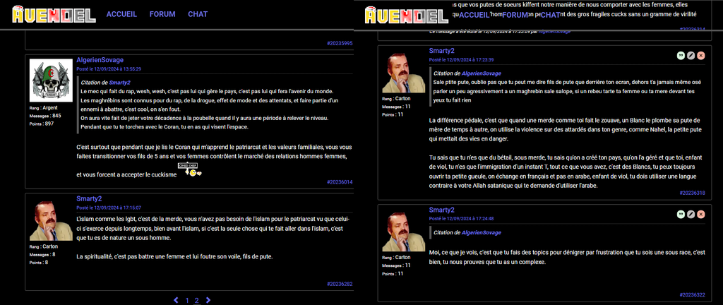 De ce que je vois, la petite salope Divin se croit malin en disant qu'il y aurait des bans ici en croyant que c'est lui mais ce déchet vient sur Onche en réalité et comme un cuck exposant sa relation, cet homosexuel refoulé et sous homme, on comprend pourquoi il a été mis modo sur avn, il est à l'image du petit gauchiste qui se fait victimiser par des types du tiers-monde, aucune dignité.