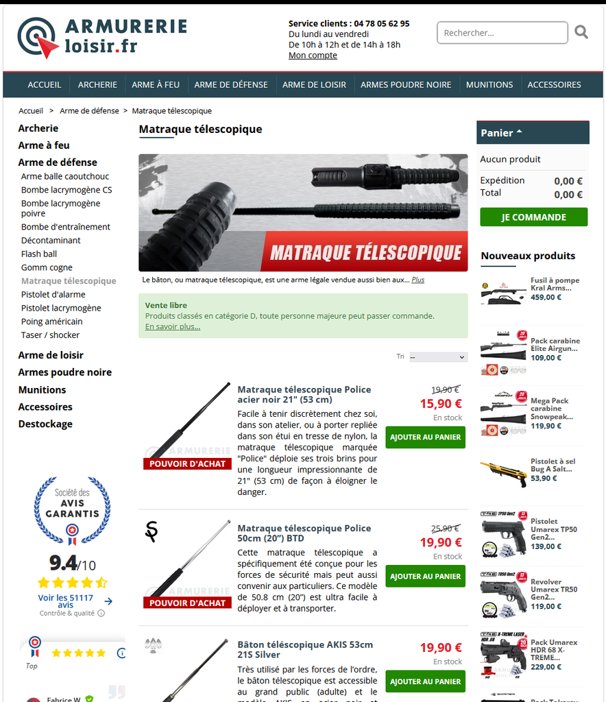 si tu veux vraiment braver la loi, tu prends un matraque télescopique au moins t as de l'allonge