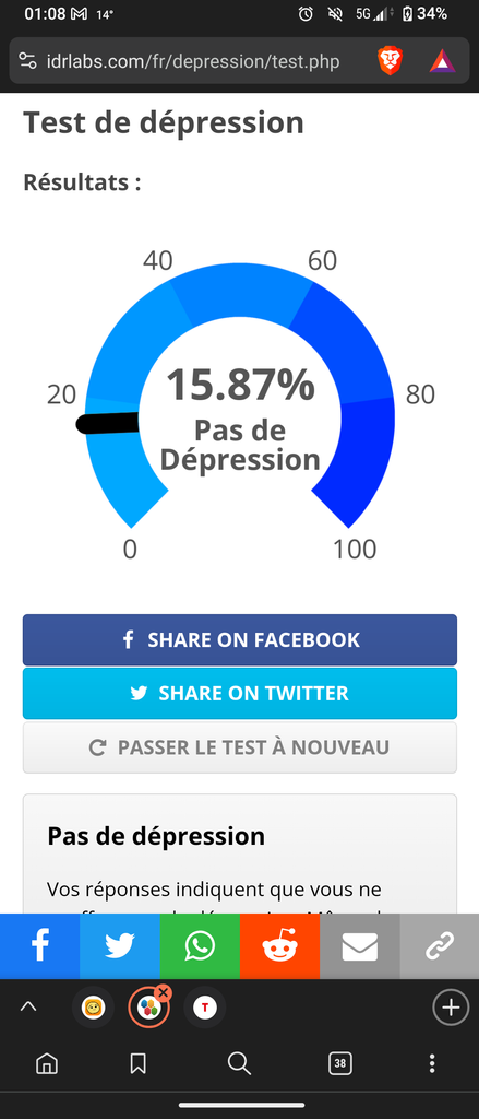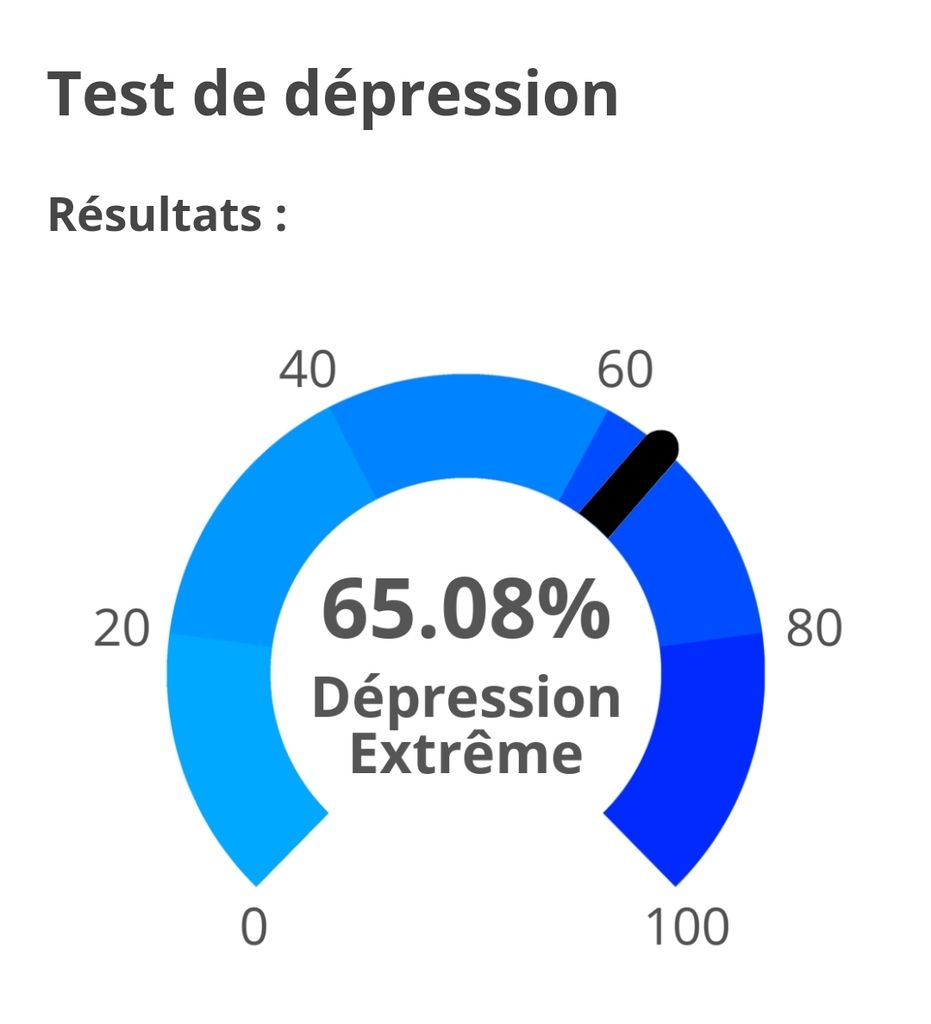 J’ai le même score … je me déteste , ne dors plus beaucoup, un déchet, désespéré pour l’avenir puis pense constamment au S