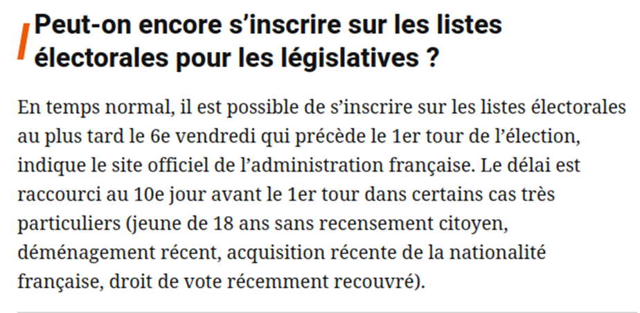 Cela prend 6 semaines à s’inscrire ou 10 jours avant le premier tour pour certains cas particuliers :