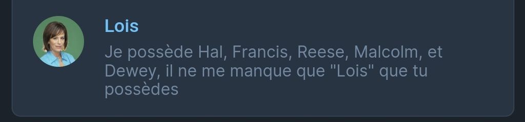 Salut à toi, j'imagine que tu as voulu sécuriser 6 pseudos : Hal, Lois, Francis, Reese, Malcolm et Dewey.