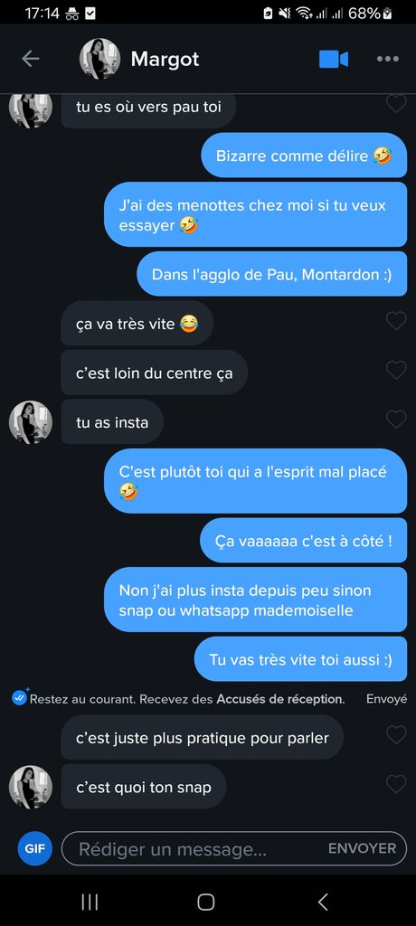 En gros j'ai donné rdv à une 8/10 de Tinder dans un bar au centre-ville (le tout enregistré de manière éco+), au début j'hésitais à rentrer dans le bar mais avec le soutien du fofo j'y suis allé. Comme elle n'était pas encore arrivée je m'étais assis au fond du bar avec un petit whisky jusqu'à que je croise la charmante Andréa qui était en train de chercher le fake bg Tinder dans le bar. Je lui ai avoué que c'était fake et j'ai vu de la déception dans son regard avant qu'elle me demande de lui payer un verre par vengeance personnelle, ce que j'ai fais pour pas la brusquer. Ensuite on a discuté ensemble une bonne demi-heure avant qu'elle décide de rentrer chez elle. Avant de partir je glisse un petit "tu veux venir chez moi ?" en mode rigolade et elle refusa. Peu après un khey ( @Kulmud ) l'appela pour confirmer le nofake et c'est ce qui a donné le vocaroo en bas.