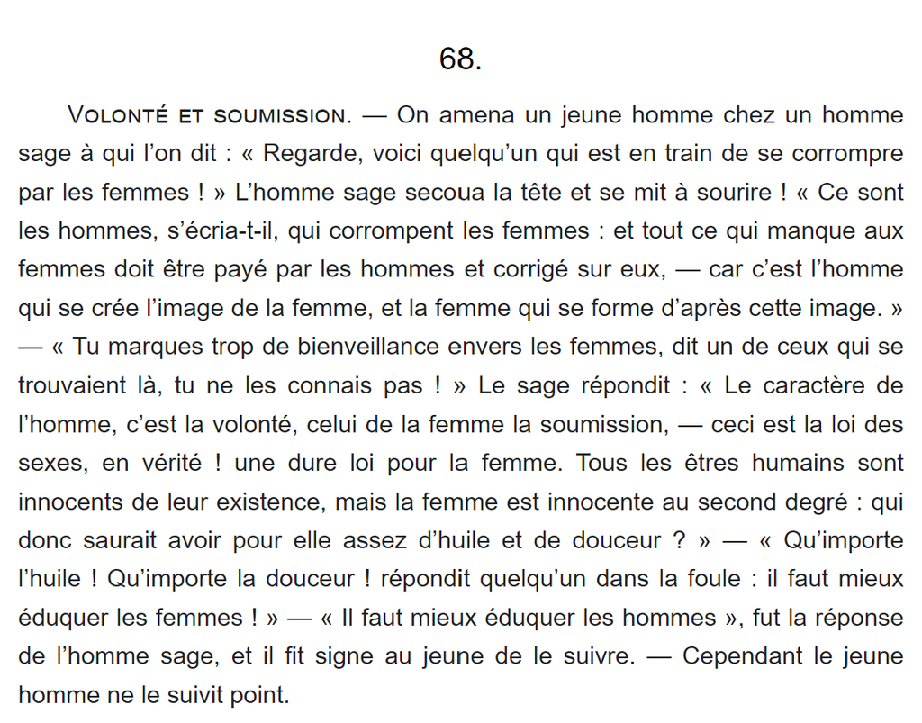 Et les hommes ont pas énormément de marge de manœuvre les femmes ne sont pas supposées être sous tutelle et si beaucoup se comportent en écervelées capricieuses qu'est-ce qu'on y peut ? On ne peut pas les forcer à se remettre en question une part importante des femmes.