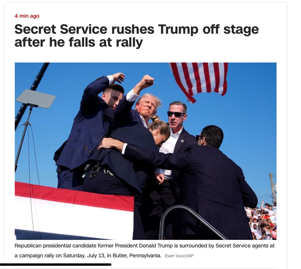 [ALERTE] il y a une 2e victime, la balle qui a frôlé l'oreille de Trump (ou une autre) aurait malheureusement tué quelqu'un dans la foule