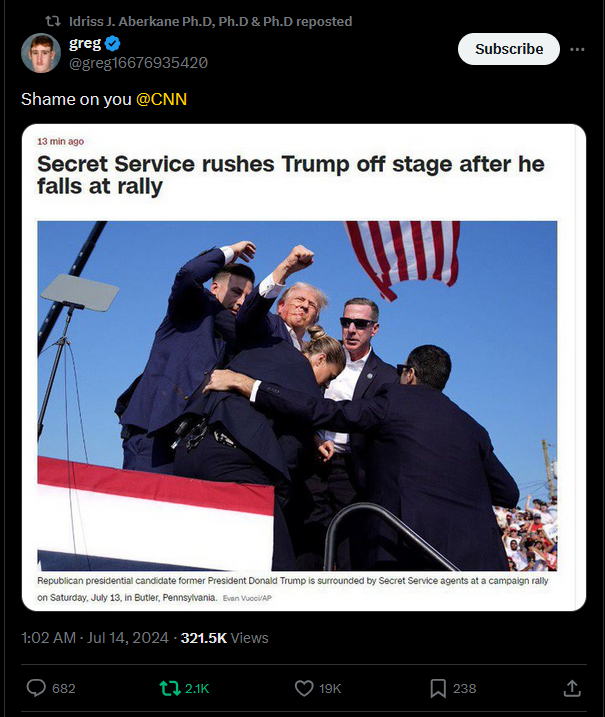C'est marrant n'empêche l'un des deux candidats du pays le plus puissant du monde et ex-président a faillit se faire buter.