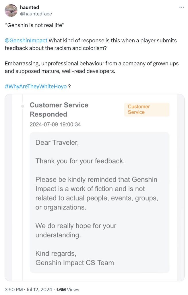 Le service client a répondu à ces baizuo qui ont trop de temps libre "Apprenez à faire la diffèrence entre fiction et réalité"