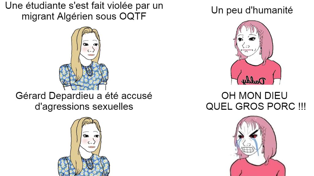 Les gauchos qui découvrent qu'ils défendent leur pire ennemi juste parce qu'ils trouvent ça de gauche d'avoir la haine contre l'homme blanc alors que ce sont eux qui font avancer le monde