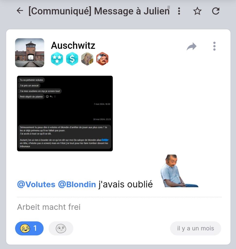Moi il m'avait accusé d'être le secondaire de SainteBenzo à un moment.