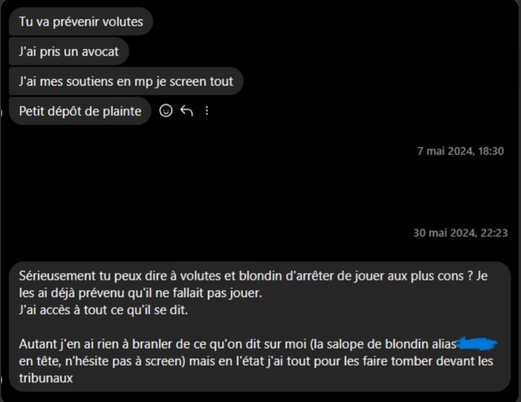 Bon bah je viens à Toulouse pour que tu m'presente a tes avocats, hein, tu l'as marquééé! j'ai les copies d'pages ecrans, que t'allais m'enfermer, donc je viens pour que tu me case au tribunal, hein !?