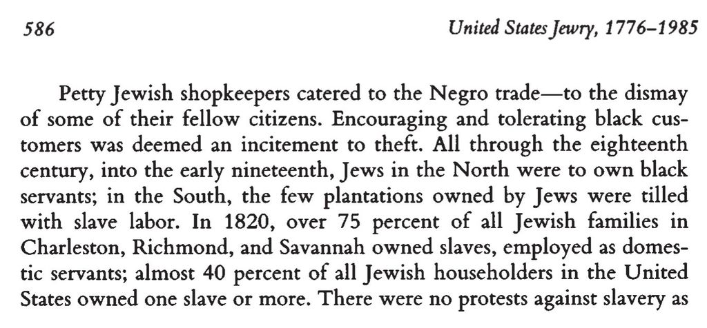 "près de 40% de tous les ménages juifs aux États-Unis possédaient un esclave ou plus."