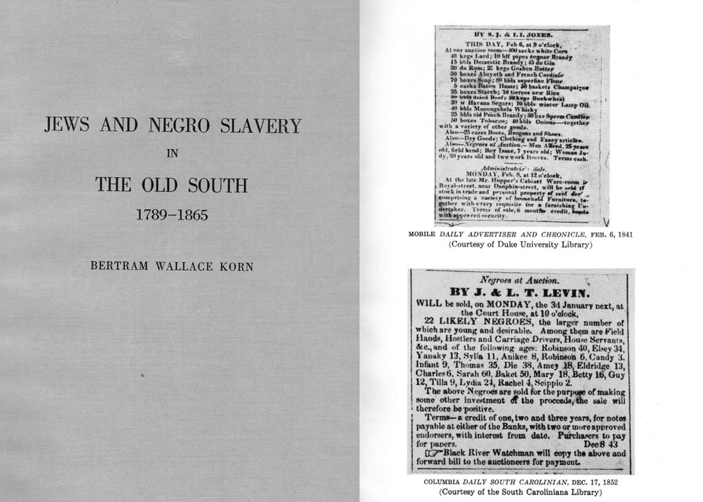 un livre sur le sujet « Les Juifs et l'esclavage des nègres dans le vieux sud, 1789-1865 » de Bertram Wallace Korn.