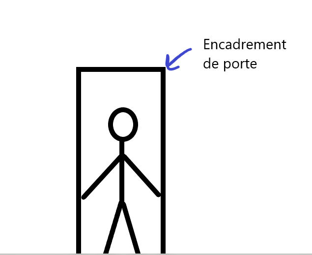Ensuite vous poussez le plus fort possible, comme si vous essayiez d'élargir l'encadrement de la porte avec le dos de vos mains pendant 40 secondes
