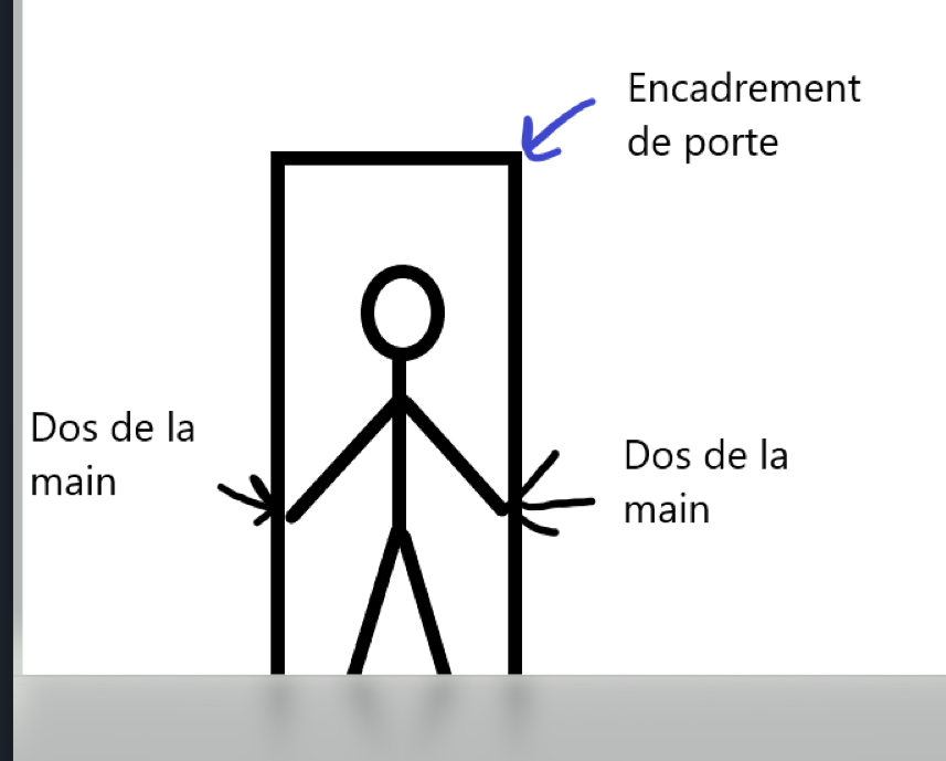 En gros placez vous au milieu d'un encadrement d'une porte tendez et écartez vos bras jusqu'à que le dos des deux mains touche l'encadrement,