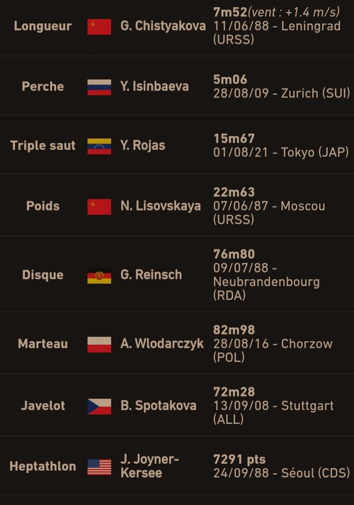 Regardez chez les femmes en athlé le nombre de records qui datent des 80s