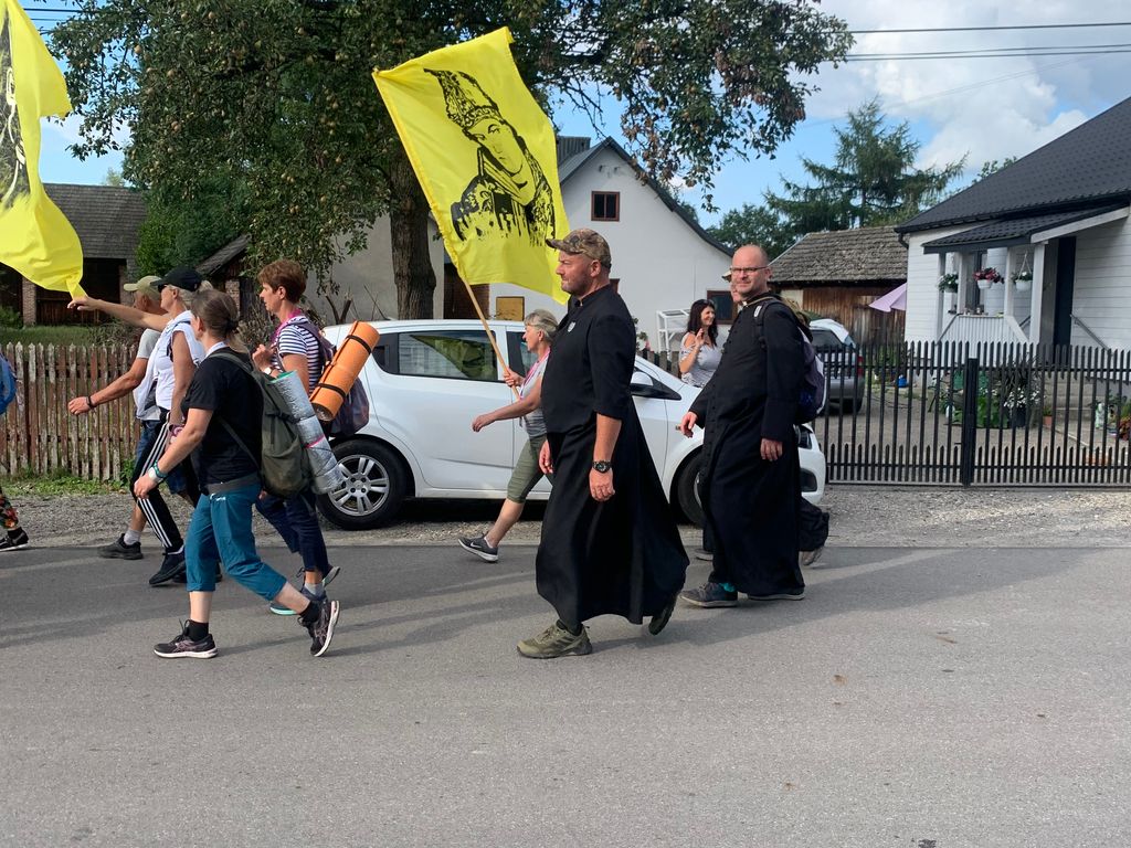 Dans mon coin commence à passer les groupes de pèlerins qui rejoignent le site de Jasna Gora à Czestochowa, haut lieu du culte de la Vierge Noire en Pologne pour le 15 août
