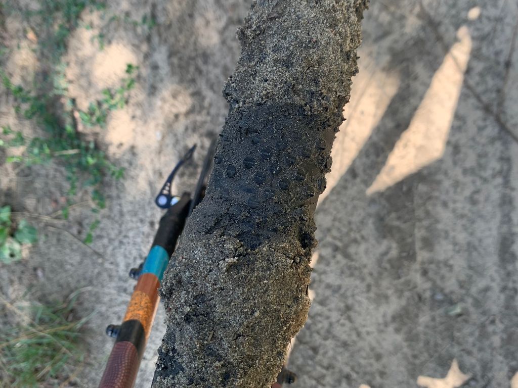 Des lignes droites de merde dans du sable