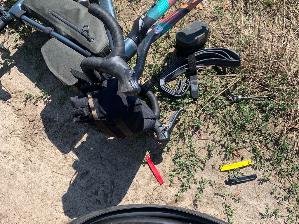 Forcément crevaison au milieu de nulle part (mais j’ ai tout le matos avec moi)