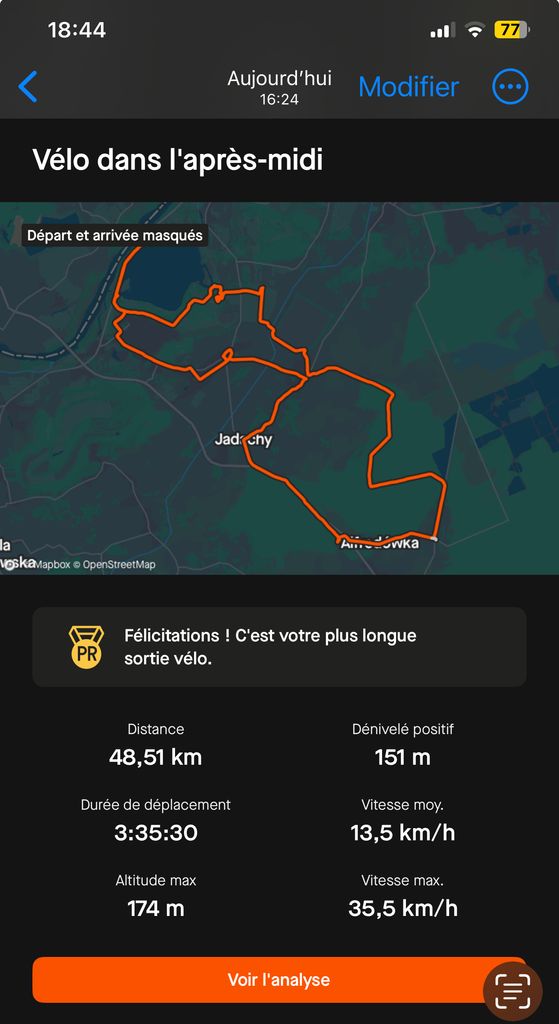 Et attendant demain, retour dans la campagne profonde par d’ autres chemins pour varier le parcours: une 50aine de km vu que je déclenche/arrête Strava après quelques km pour bien masquer les départs/arrivees de ce compte ballade.