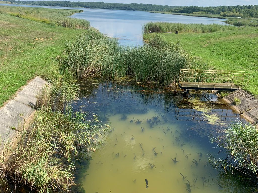 On voit les premiers bassins à poisson qui servent entre autre de test naturel pour la qualité de baignade