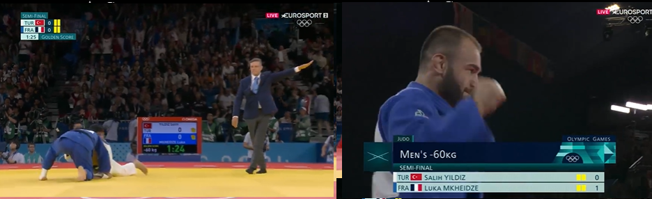 Golden score : Période supplémentaire en cas d'égalité entre deux combattants à l'issue des quatre minutes réglementaires. Elle n'a pas de limite de temps. Durant le golden score, n'importe quel point marqué est synonyme de victoire et de fin du combat.