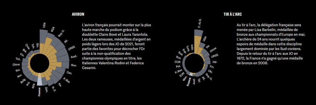 Survolez chaque graphique pour voir combien de médailles ont été remportées par délégation, depuis 1948.