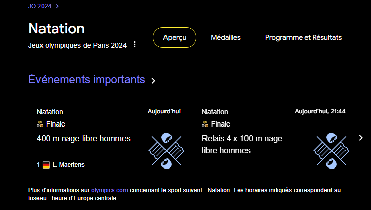 La natation c'est à quelle heure la finale?