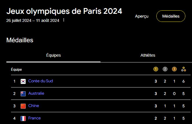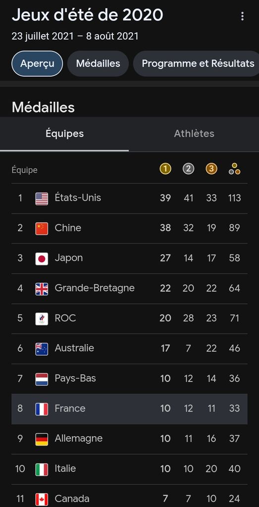 Ça va dépendre de la natation et du judo j'imagine, ce qui rapporte beaucoup de médaille
