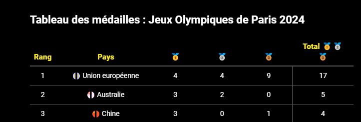En 2021, les Bleus avaient remporté 33 médailles.