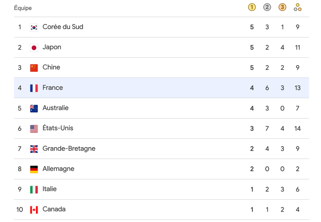 même le total de médailles, on fait un excellent démarrage