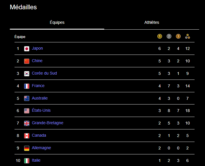 Il ne faudrait pas que le Canada gagne trop de médailles aussi, ça monte bien en natation.
