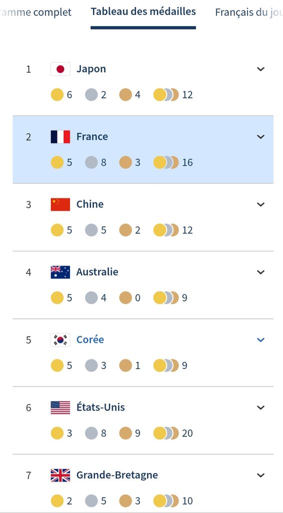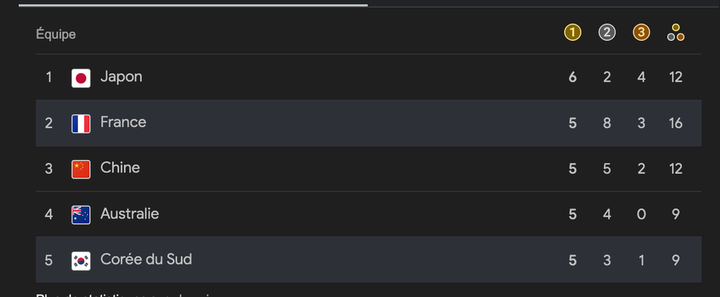 Les USA qui ont plus de médailles que nous maintenant. Ahi. Dommage. C'était une première place qui aura duré 1 journée.