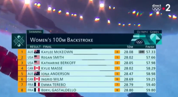 Et l'Australie qui prend encore une médaille d'or avec record olympique amélioré !!! Trop forte !!!
