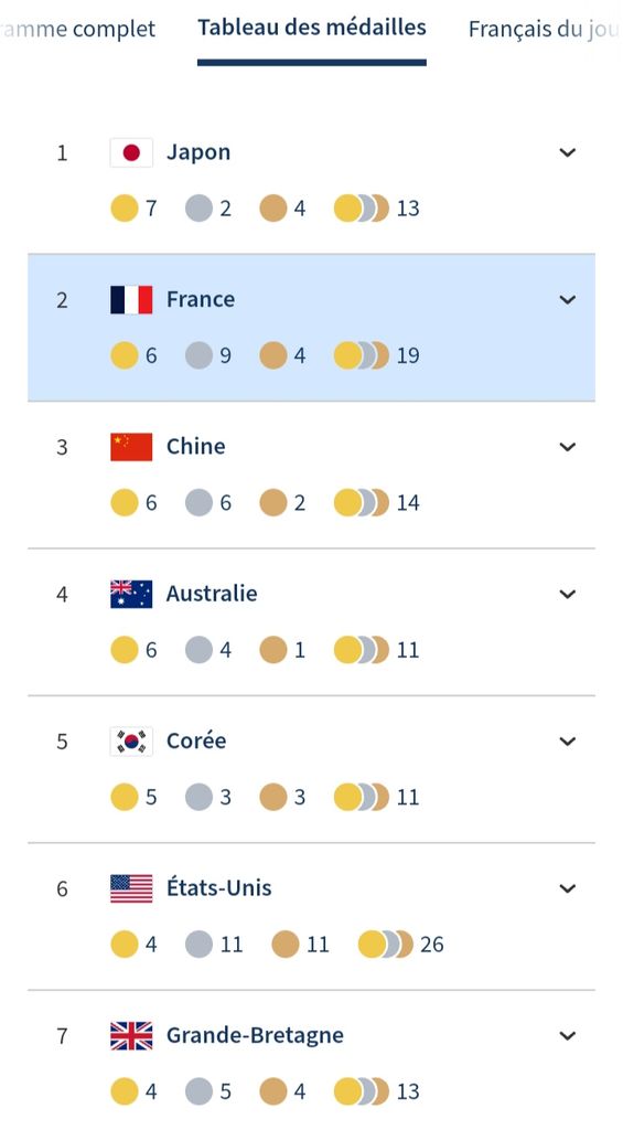 On va avoir la place numéro uno, c'est vraiment un joli coup pour cette femme, le reste est easy, la Chine et le Japon ne feront pas mieux pour cette journée en chance médailles or.