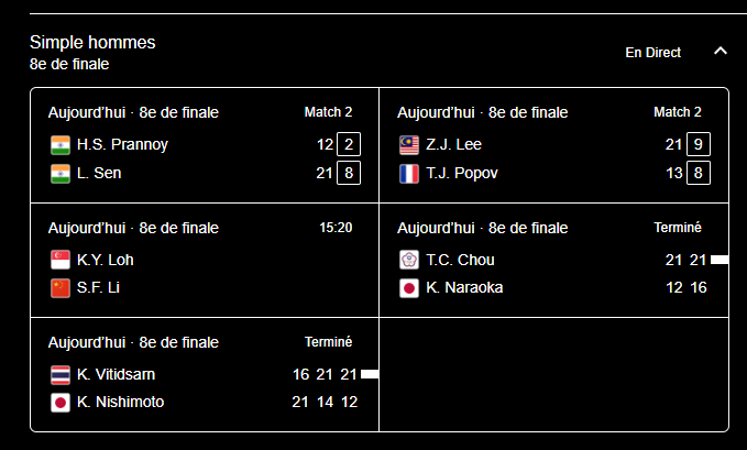 Bordel en badminton même le vent est contre Popov.