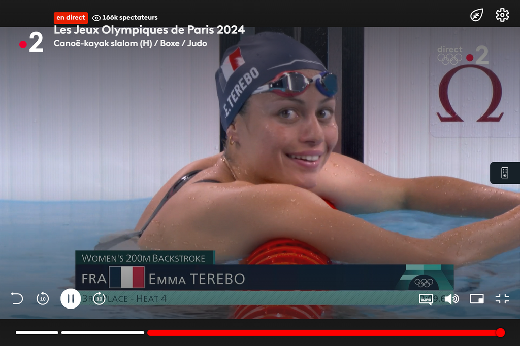 - 21h19, Natation (F) : 200 m dos, demi-finales (chance de médaille) (Pauline MAHIEU, Emma TEREBO)