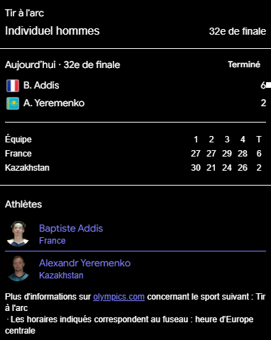 Encore un Français qui a 17 ans et il doit taper la médaille d'or, tir à l'arc.