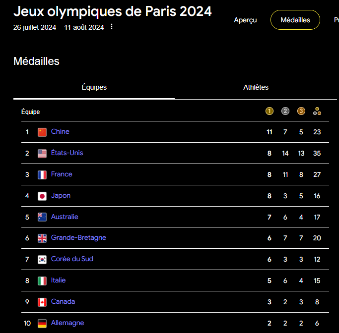 La Chine est brisée, on le sait déjà mais on doit voir si il y a moyen pour la France de taper la place 1 temporairement encore.