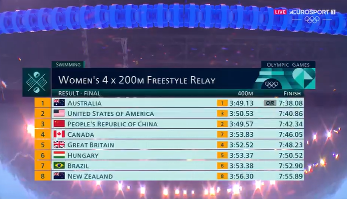 ET L'AUSTRALIE NATATION FEMME QUI L'EMPORTE TITRE MONDIAL EN RELAIS !!!