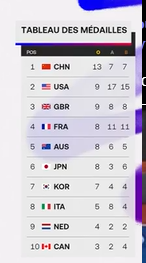 On se fait dépasser par les anglais au tableau des médailles