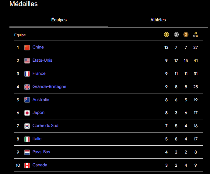 Classement médaille :