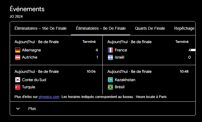 19h00 : Canada - Allemagne (Femmes, quarts de finale)
