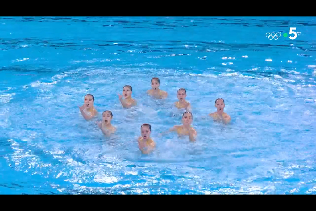 - 19h30, Natation artistique : Épreuve d'équipe, prog libre ([FRA] France - 9 athlètes/équipes)