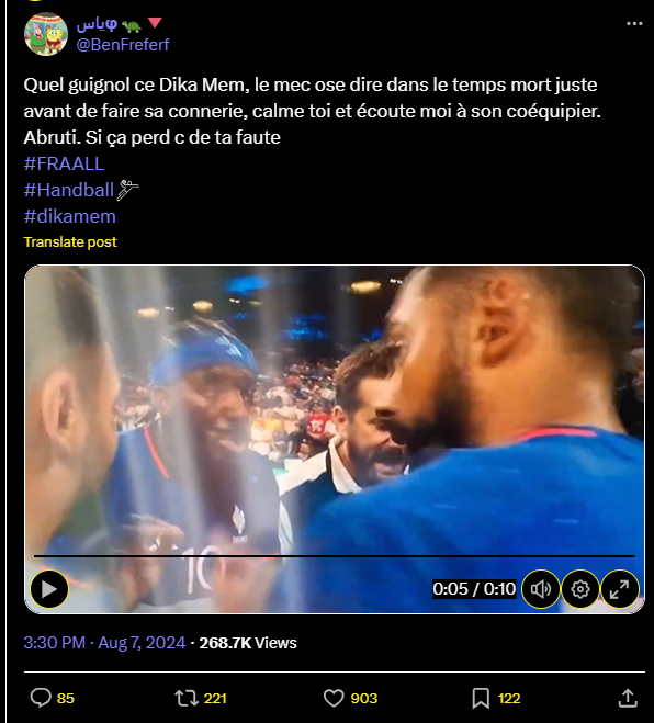 Quel guignol ce Dika Mem, le mec ose dire dans le temps mort juste avant de faire sa connerie, calme toi et écoute moi à son coéquipier. Abruti. Si ça perd c de ta faute