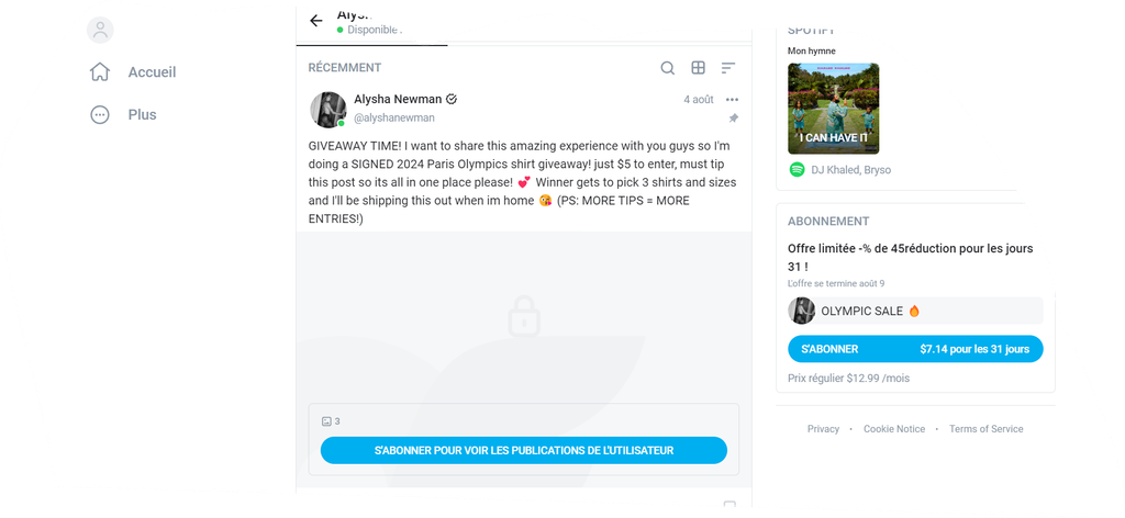 les JO qui sont juste une vitrine pour montrer son cul et augmenter le nombre d'abonnements à son OF