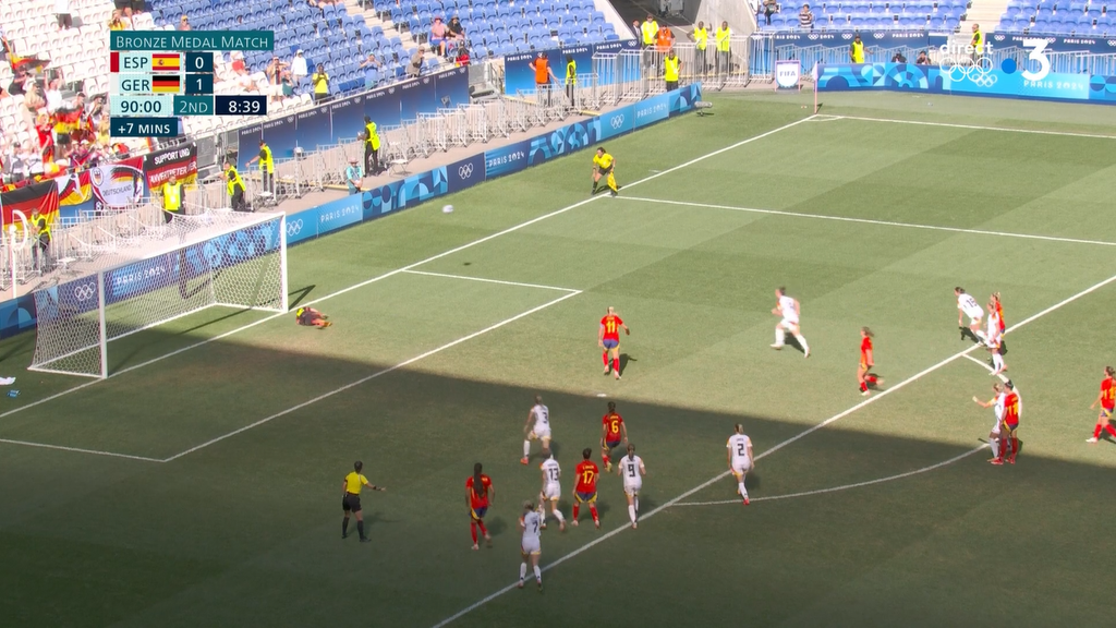 Arrêt de la gardienne allemande à la dernière seconde.